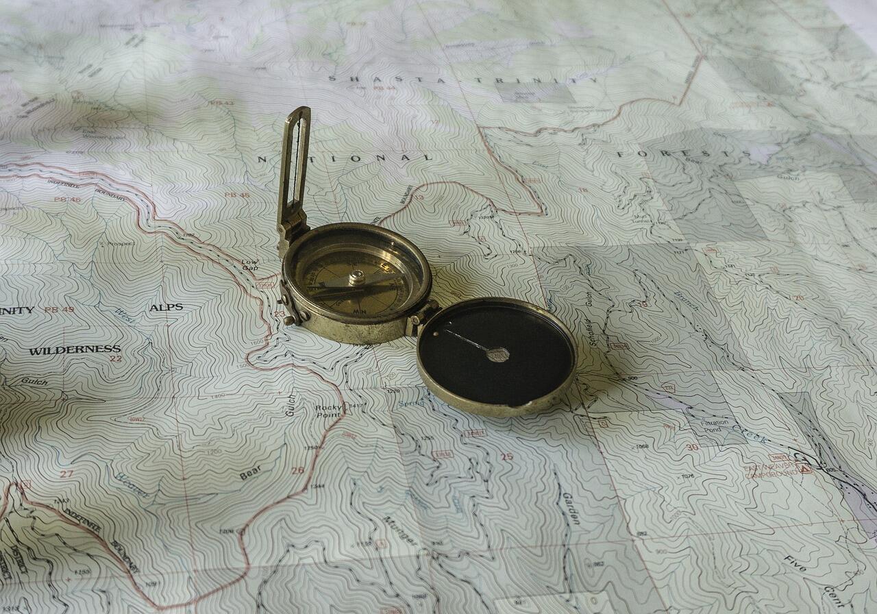 Přesná orientace - použijte buzolu. Na buzole otáčením úhloměru nastavte sever „N“ nebo-li 0°. Hranu buzoly přiložte na mapu tak, aby hrana přesně kopírovala boční okraj mapy (severojižní linii N-S). Otáčejte současně mapou i přesně přiloženou buzolou tak dlouho, dokud střelka neukazuje na značku severu na úhloměru buzoly.