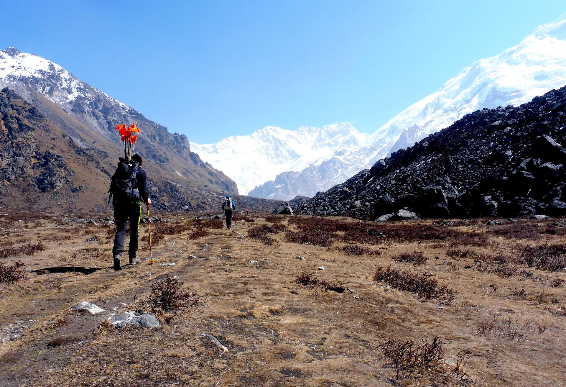 Nakoniec však všetko prebehlo hladko a keď sme spolu s kuchárom dorazili do Ramche, náš základný tábor už stál. Čo sa týka Kančendžongy, tak pri súčasnom spôsobe organizovania a zabezpečovania výstupov na nepálske osemtisícovky, keď sa vo veľkom využívajú vrtuľníky a to, bohužiaľ, už nie len na vývoz bohatých klientov do základného, prípadne do vyšších táborov, ale v poslednom čase aj na vývoz výškových nosičov a materiálu potrebného na vybudovanie komfortnej výstupovej trasy do čo najväčšej nadmorskej výšky, vnímali sme blízkosť Kančendžongy iba vďaka občasnému zvuku motorov. Nuž a tretia časť otázky by mohla byť témou na samostatný článok, alebo niekoľkohodinovú odbornú diskusiu.