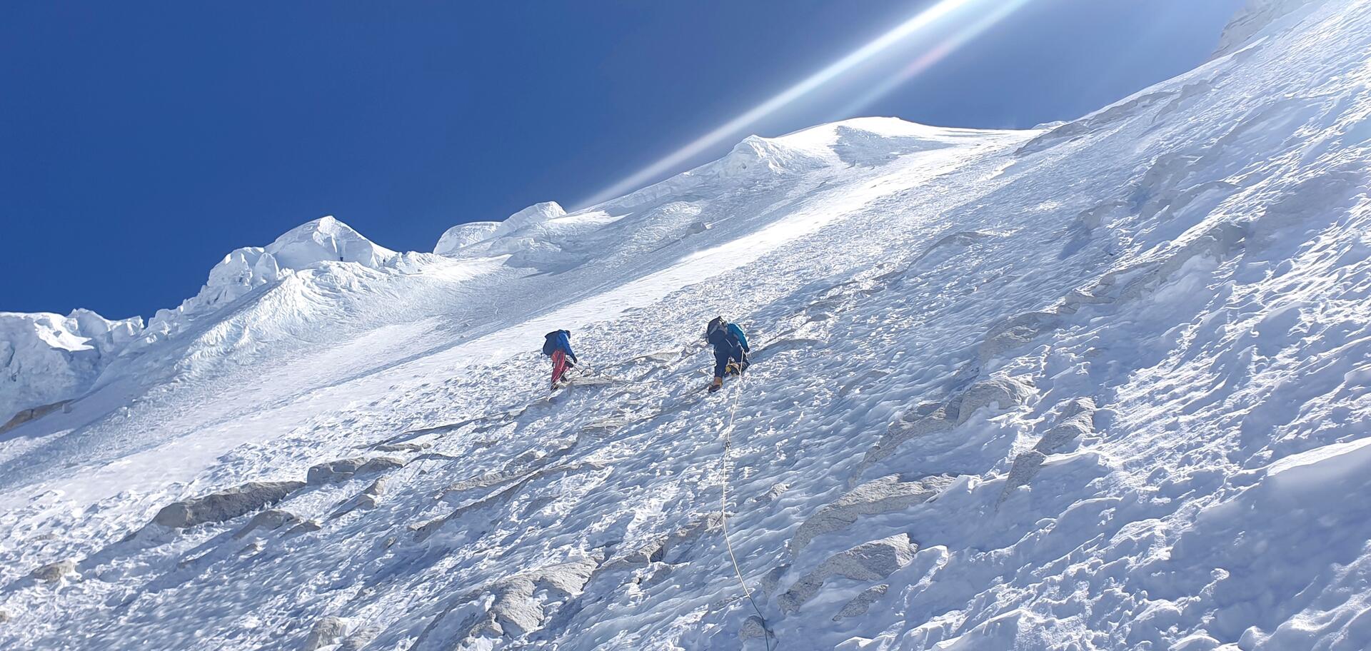 Mojimi partnermi boli aj tentoraz talianski manželia, výborní výškari a veľmi príjemní ľudia, Nives Meroi a Romano Benet. Aj keď v roku 2017 spoločne dokončili Korunu Himalájí liezť neprestali. Naopak, vyberajú si čoraz náročnejšie ciele, najlepšie čo najďalej od ľudí a frekventovaných výstupových trás na populárne himalájske vrcholy. Štvrtým, najmladším členom tímu bol iba päťdesiatjedenročný Slovinec Bojan Jan, všestranný športovec, ktorý sa v posledných rokoch venuje hlavne lezeniu v ľade a drytoolingu. A bola to naozaj parádna zostava. Dobre sme si rozumeli nie len v stene, ale aj v základnom tábore, počas trekkingu, pri výbere jedla i hudby – jednoducho počas celej výpravy. Absolútna pohoda. Ako hovoria poliaci - parťáci, s ktorými sa dajú aj kone kradnúť.