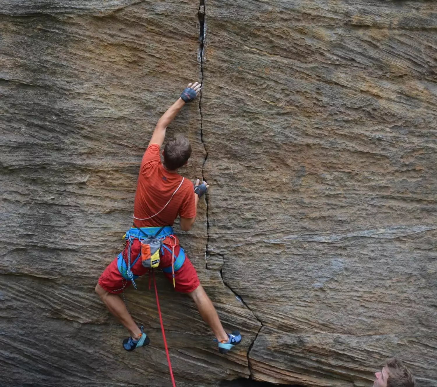 Parádně se mi Mastie osvědčily taky při lezení tenkých prstových spárek na písku nebo na žule. Buď v nich ustojím malé stupy kolem spáry anebo se díky svému nízkému profilu dají dobře nacpat i do tenčích spárek. Kam bych si je nevzal, jsou širší spáry v Ádru, tam by jich byla škoda a protože nejsou zase tak moc pogumované a možná by mi dlouho nevydržely.