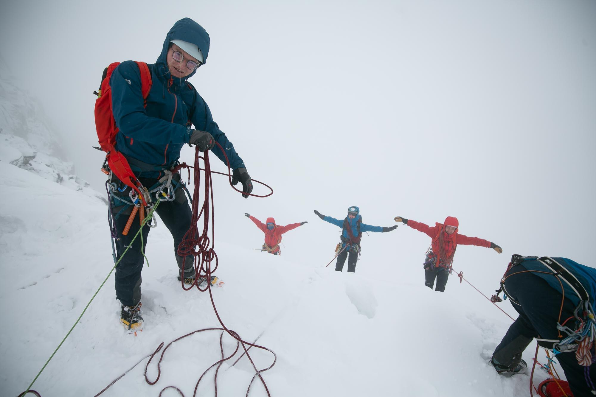 Na počasí něměli (podobně jako na předchozích výjezdech) moc kliku, ale metodických poznatků si přesto přivezli až až. Pod odborným vedením Zobana se věnovali pokročilým horolezeckým technikám a záchranným postupům, včetně záchrany po pádu do trhliny.