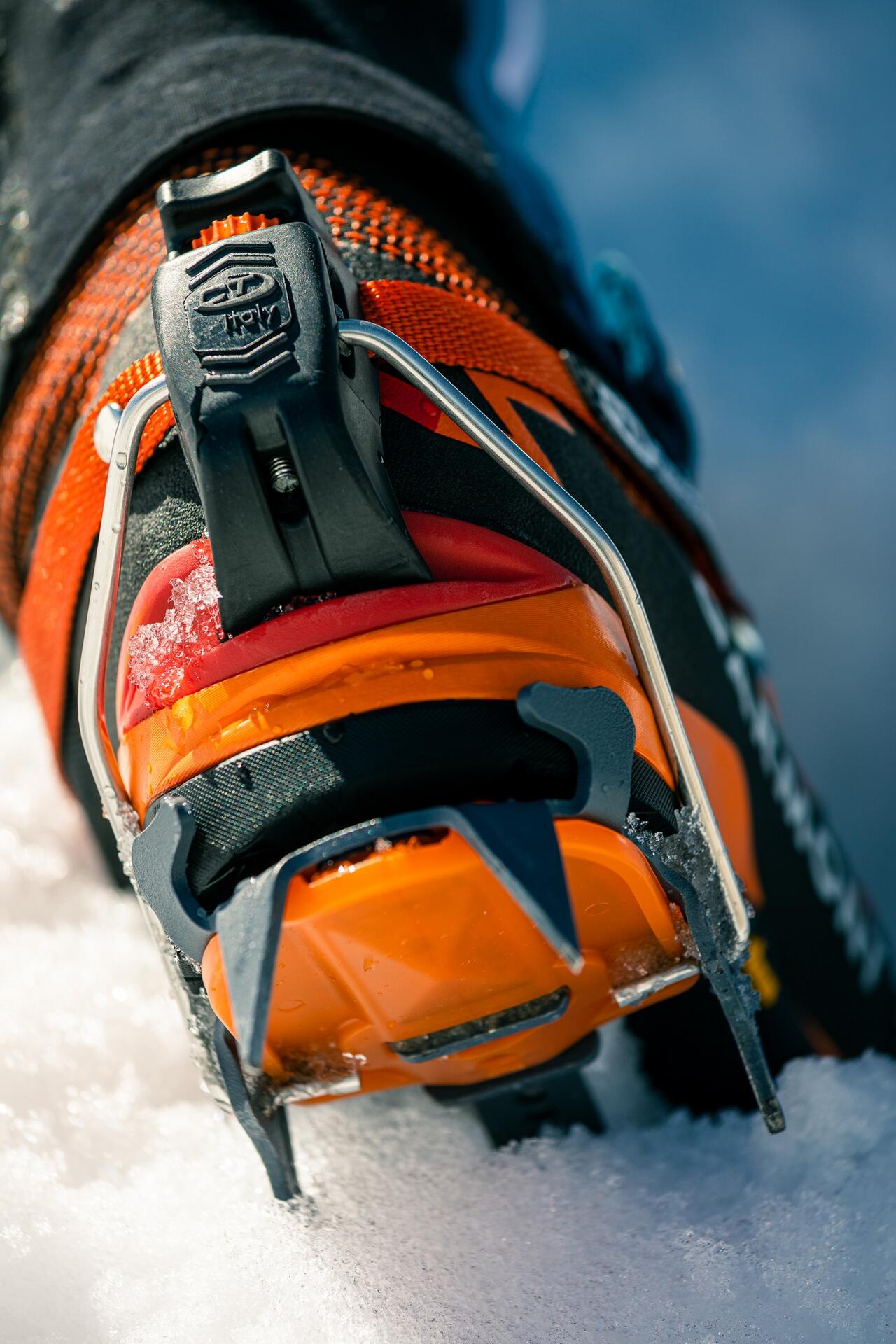 Automatické upevnění maček je ideální pro skialpinismus a skitouring. Hrazdička se vpředu nasadí na nálitek špičky boty a vzadu se použije rychloupínací páka. Pro optimální upevnění maček je důležité, aby byla hrazdička plnohodnotně nasazena na botu a byla spojena ocelovým páskem s utahovacím popruhem.