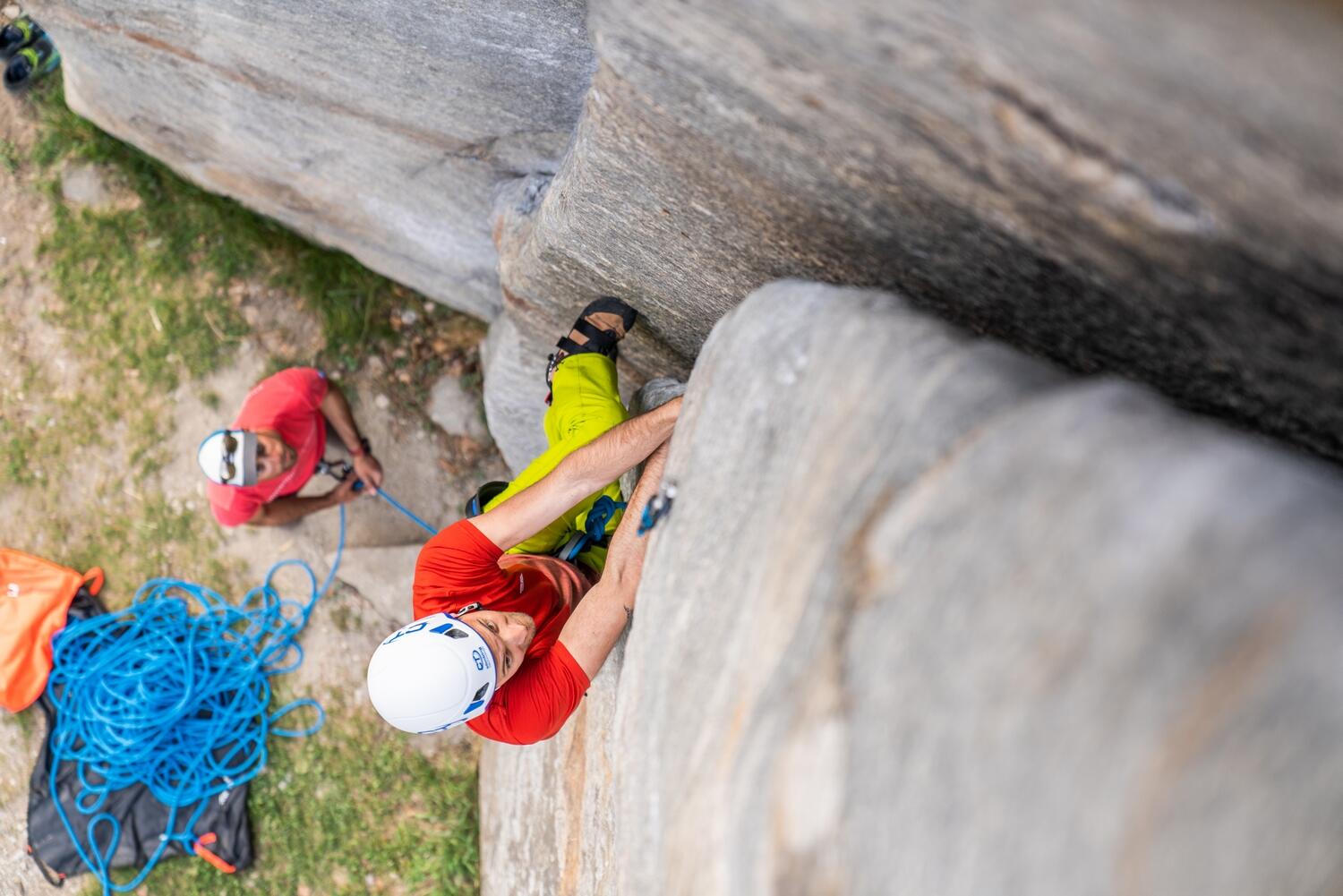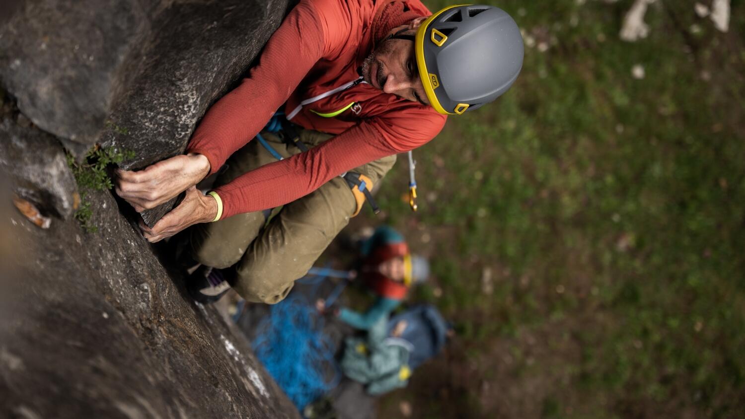 Nosit helmu při sportovním lezení na skalách není žádná ostuda. Přilba chrání jak před zraněním hlavy po pádu, tak před padajícím kamením.