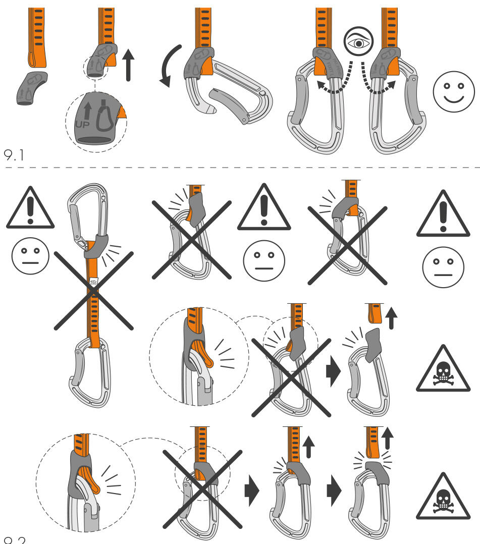 - Karabina typu K – se používá pro jištění na ferratách. Má větší světlost a stiskem ovladatelnou pojistku.