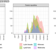 Grafy výšky sněhu ukazují, že Slovensko na tom bylo poměrně dobře. Po porovnání jsme brali do úvahy stanice z podobné nadmořské výšky. Skoro na všech stanicích je vidět masivní úbytek sněhu na přelomu roku.
