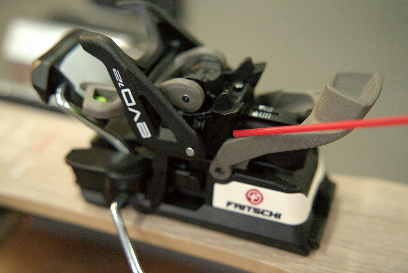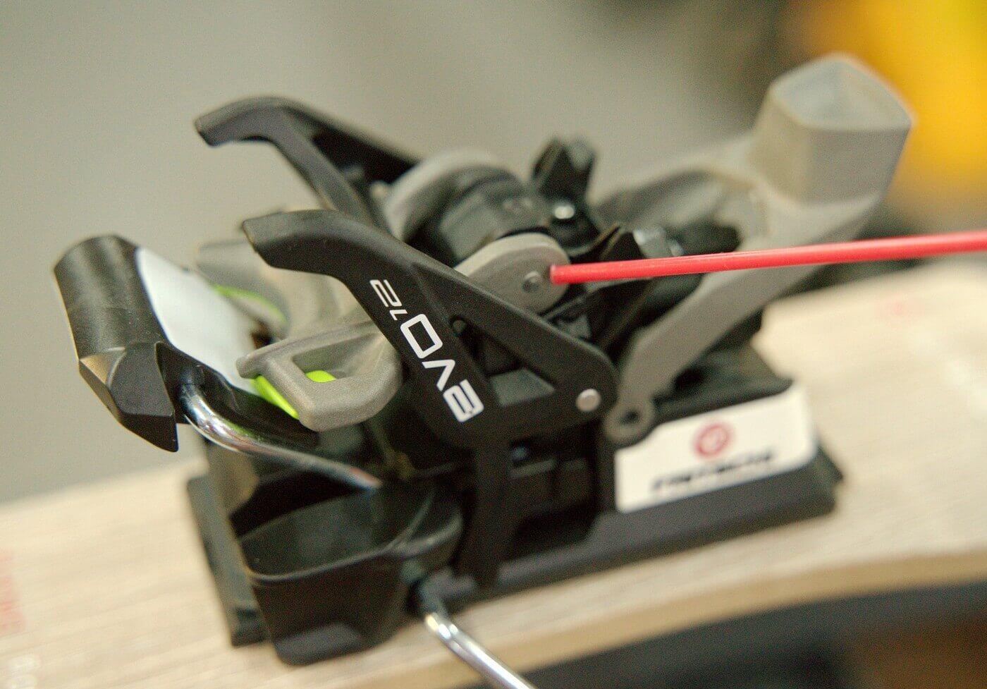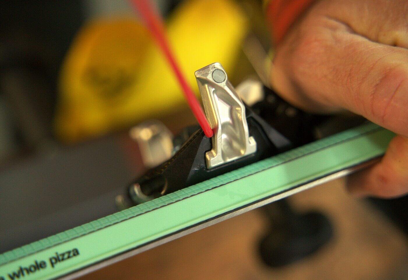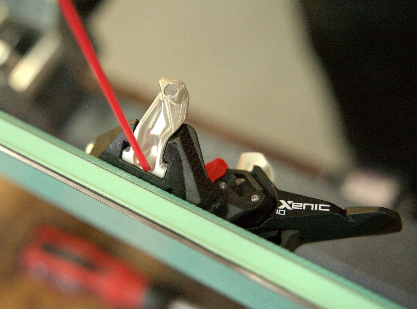 U špičky je důležité hladký chod čelistí s piny do stran. Nejlépe tekutou vazelínou ve spreji. Pro aplikaci z boku je dobré postavit lyže na bok, aby vazelína stekla na styčnou plochu. Další možností je stlačit prstem aretační páku, tím dojde k posuvu čelistí a v ten moment šplíchnout mazivo mezi plast a kov.