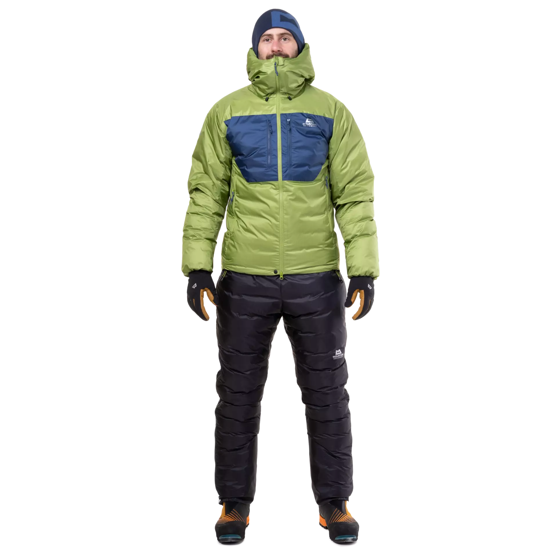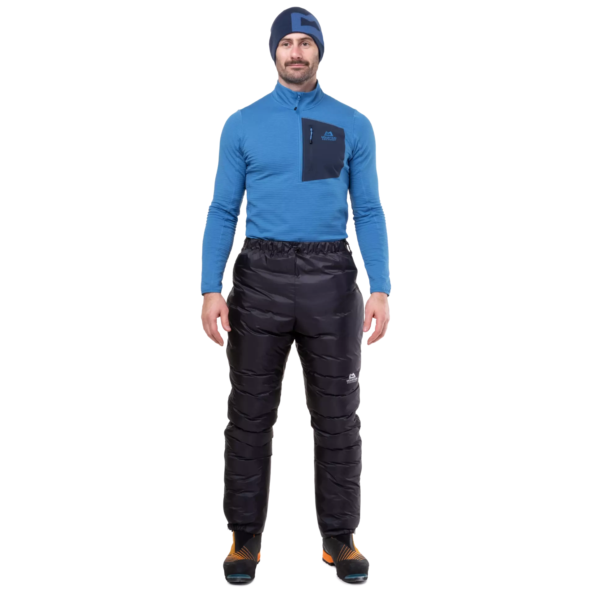 Vysoce ochranné a teplé péřové kalhoty s perfektní mobilitou určené pro moderní alpinismus a polární expedice.