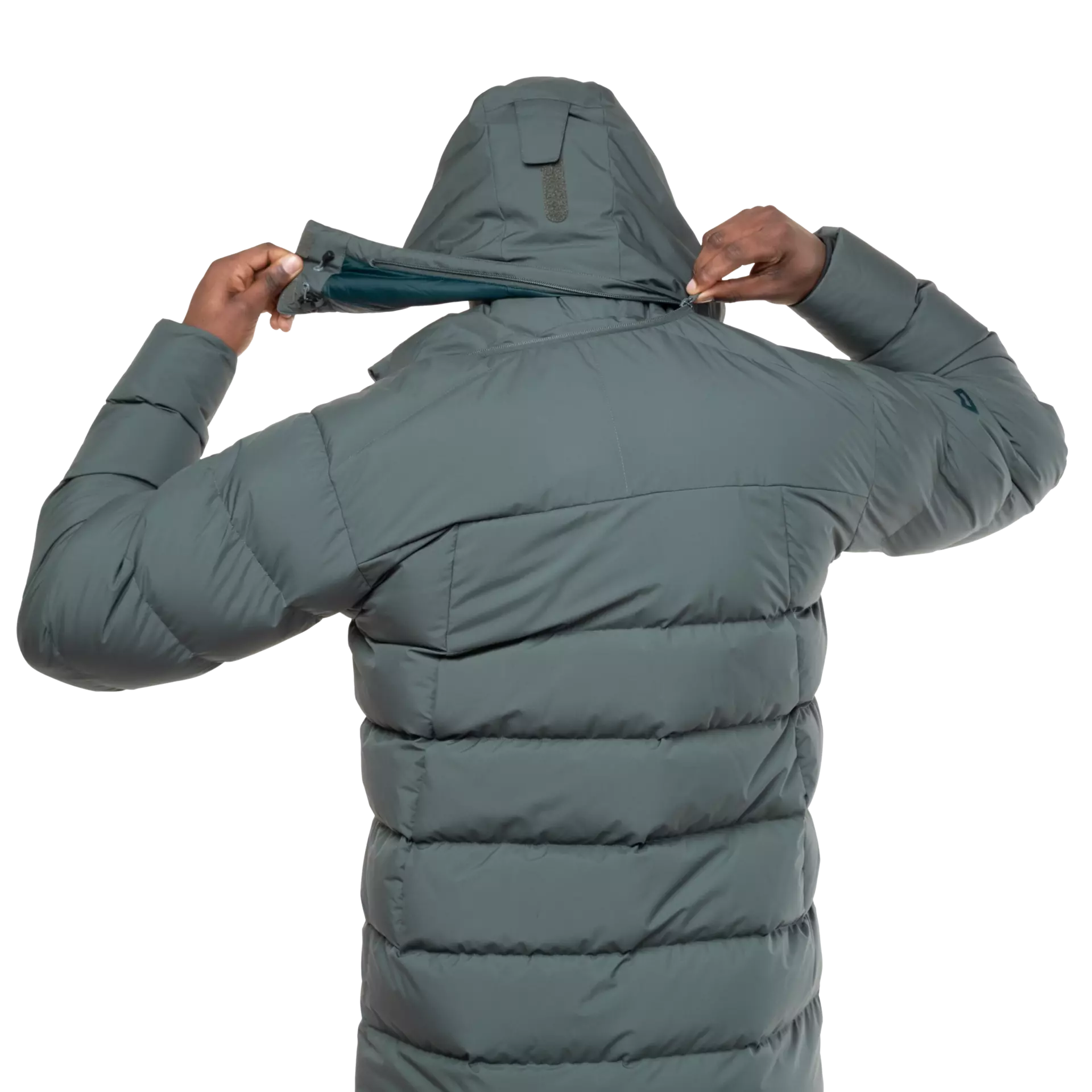 Zip-off Mountain Insulated Hood je plně nastavitelná kapuce odnímatelná pomocí zipu. Je opatřena kšiltem a ušitá je ze tří panelů, aby co nejlépe seděla. Z vnitřní strany je nepromokavý povrchový materiál DRILITE® Loft. Peří zůstane v suchu i pokud ti do kapuce napadá sníh.
